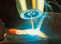 La GMAW (o soldadura de arco con alambre continuo bajo protección gaseosa o de gas inerte de metal) es un proceso de soldadura de arco que requiere de una alimentación automática de un electrodo protegido por un gas que es suministrado de forma externa.